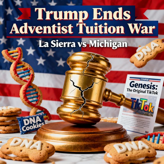 In a move no one saw coming, Donald Trump stepped in to end the tuition war between La Sierra University and the Michigan Conference. The dispute? Michigan refuses to subsidize tuition for students attending La Sierra because… evolution. Yes, evolution.