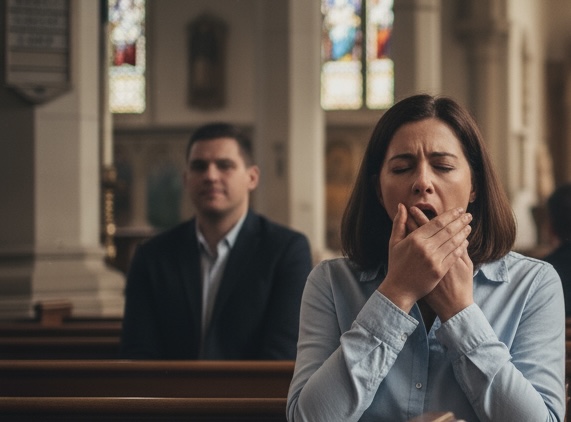 Start mentally counting ceiling tiles, cute prospects per pew, or how many “Amens” it’ll take before this finally ends.