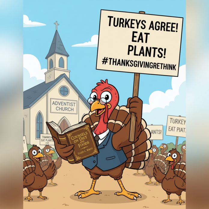 In a rare joint statement released yesterday, the National Association of Turkeys called on Adventists nationwide to honor Ellen White’s counsel on vegetarianism — specifically warning that ignoring it could result in “unnecessary existential trauma every fourth Thursday of November.”
