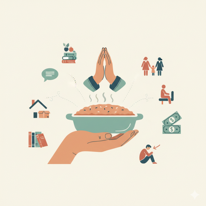 Because too often “I’ll pray for you” is what we say when someone is struggling financially… while we clutch our wallets tighter. Or when someone is drowning in burnout… and we forward them a verse instead of offering childcare. Or when someone is clearly hurting… and we deploy prayer like a polite Christian smoke bomb and vanish.