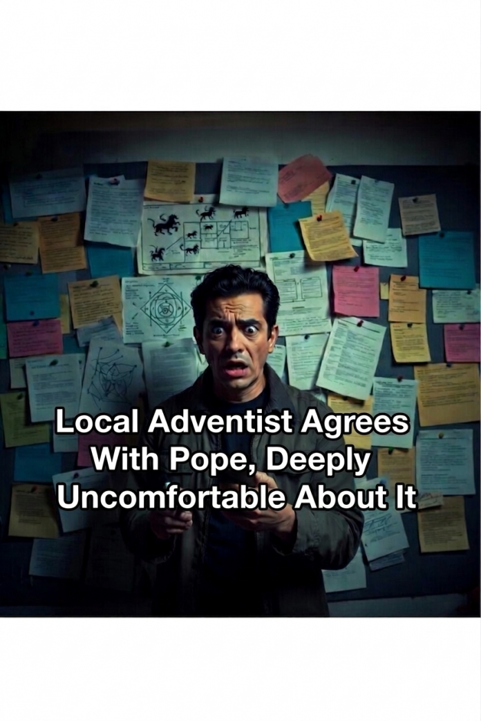 COLLEGEDALE, TN — Area Seventh-day Adventist and longtime prophecy chart enthusiast Gerald Finster, 58, confirmed Tuesday that he agrees almost entirely with Pope Leo XIV’s recent statements on war, peace, and the suffering of innocent people — and that he has not slept properly since.